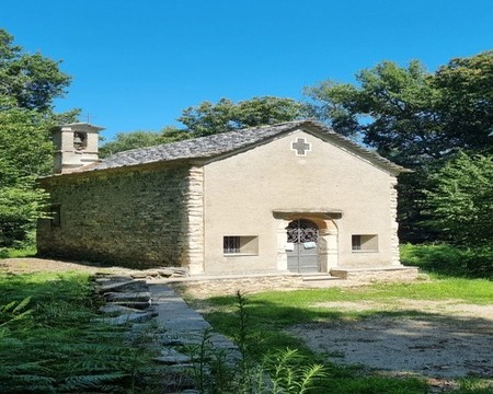 Accessibile tramite un breve viottolo, l’oratorio si trova in una posizione incantevole, circondato da un denso bosco che ne esalta la serenità. L’architettura dell’edificio è semplice ma affascinante, con una pianta longitudinale a navata unica. La facciata, caratterizzata da un elegante tetto a due spioventi, è adornata da un piccolo campanile a vela, mentre l’ingresso principale, sormontato da una cornice in pietra, accoglie i visitatori con due imponenti battenti lignei.
